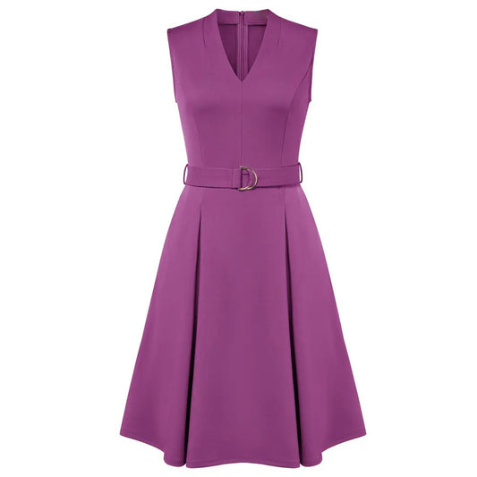 Women's Sleeveless V-Neck A-Line Dress with Belt