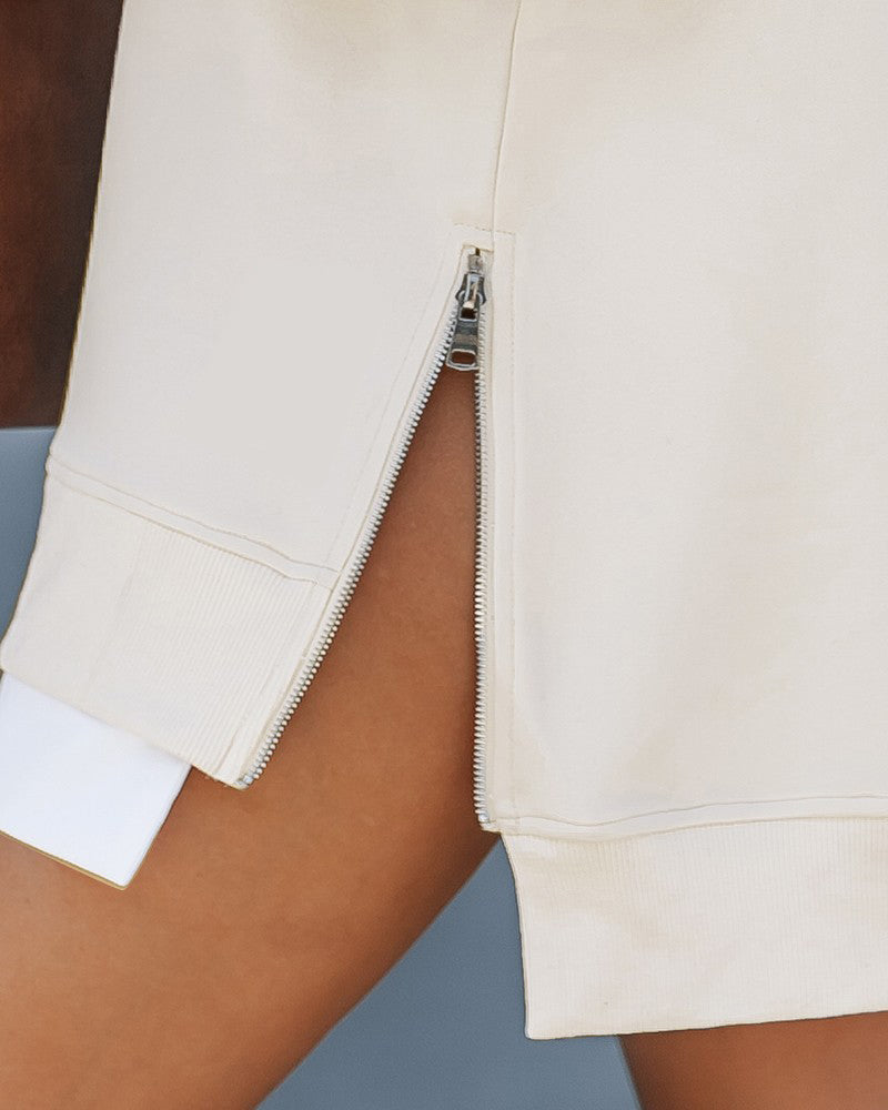 - Design: The Round neck sweatshirt, the zipper works moothly, solid color, round neck,the zipper side slit design also looks great layered under jackets, coats, vests and cami shirts.