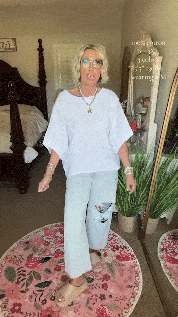 This bat sleeve top is stylish and practical, a must-have item for your summer wardrobe. Loose fit, oversized silhouette, unique inverted curved hem design and playful bat sleeves, perfect combination of comfort and fashion. Suitable for any body type.