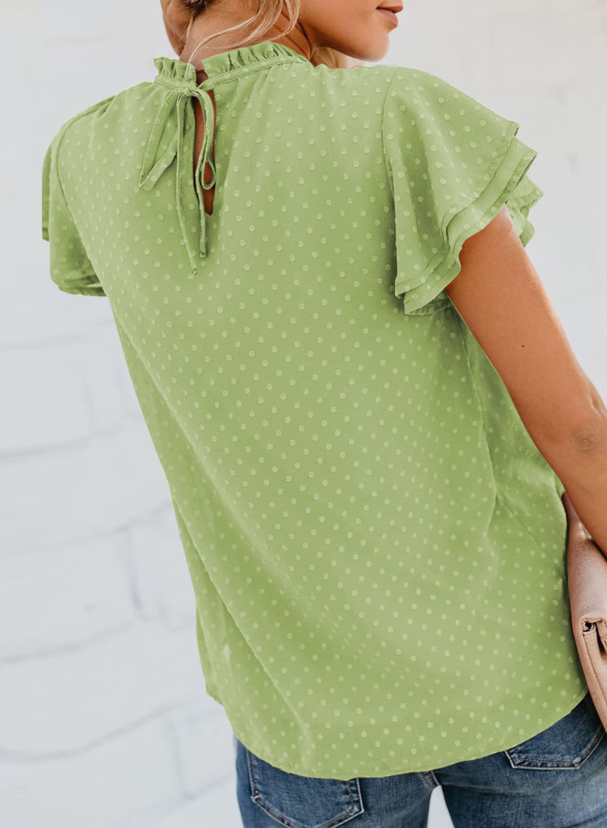 This ruffle-sleeve dot top is comfy, airy, and super flattering. The smocked detail gives it that extra cute touch. Pairs perfectly with jeans or shorts.