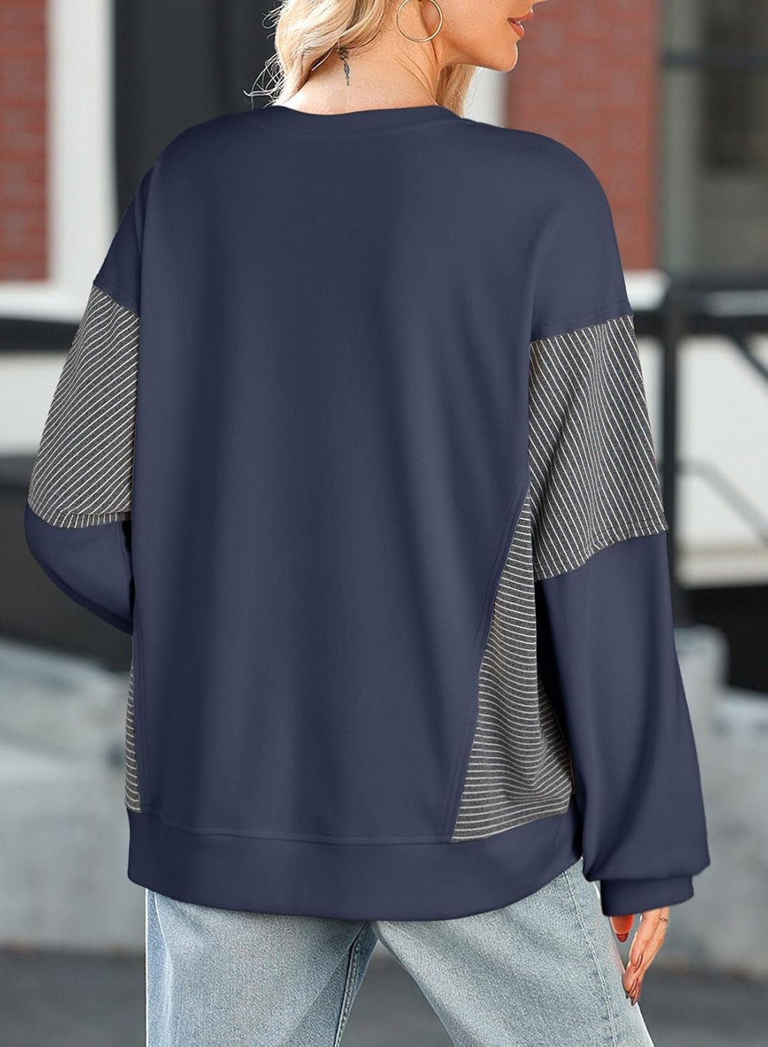✨Women's Crewneck Patchwork Stripe Long Sleeve Pullover Sweatshirts