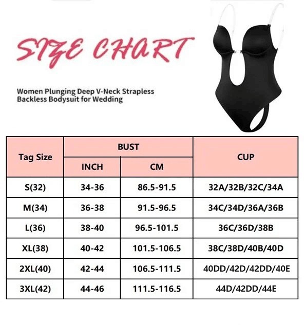 👗 Plunge Shapewear With Deep V-Neck And Backless Design, Underwire Cups, U Plunge.Commonly Worn Under Wedding Dresses, Party Dresses, And A Variety Of Low-Cut Outfits And Necklines.