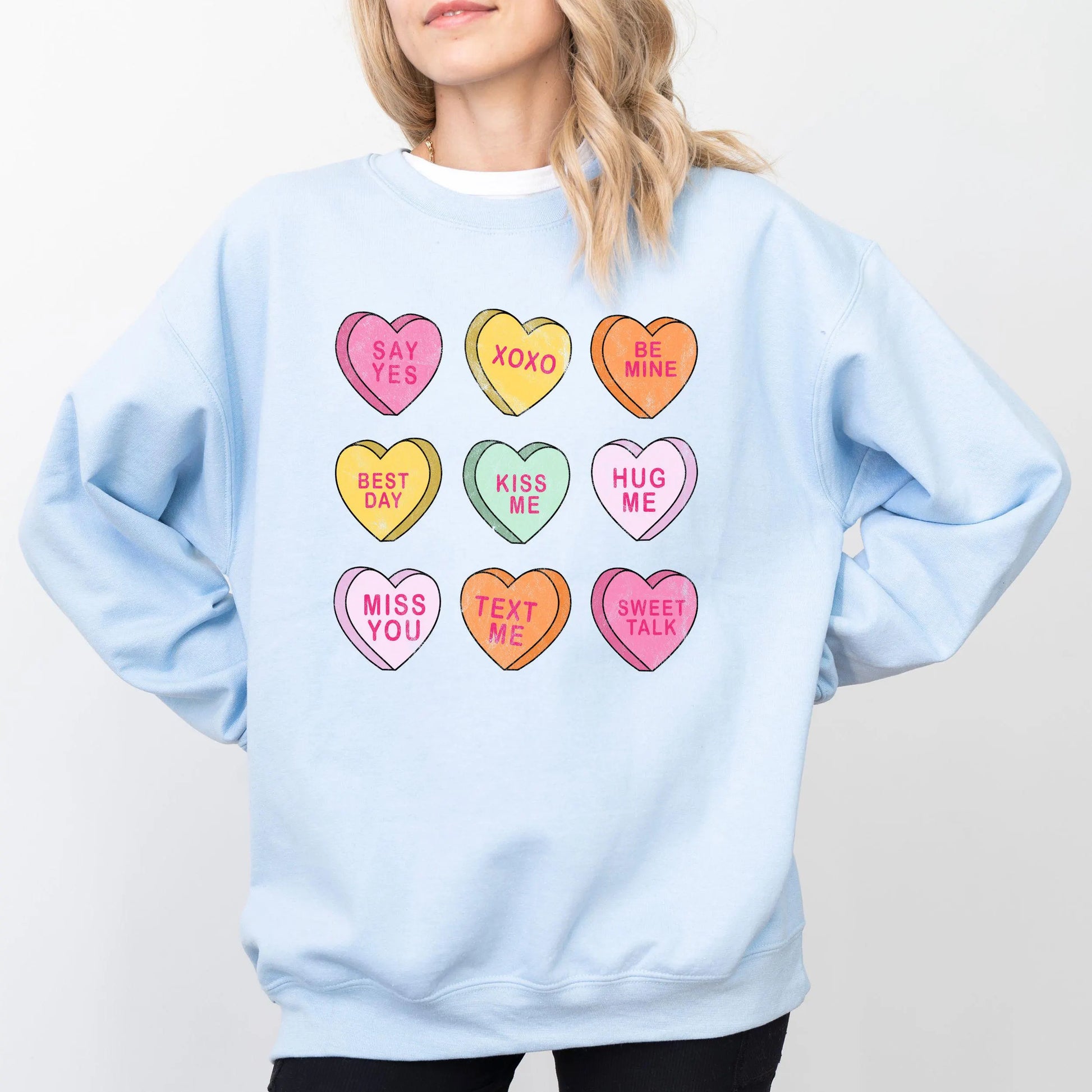 💖🍬The Candy Hearts Sweatshirt is a must-have for the cozy Valentine's season, but it's also just a great spring sweatshirt to wear anytime! With its soft fleece material inside and slightly oversized fit, you'll feel comfortable and stylish! Wear with denim and cute sneakers, or keep it casual with leggings!