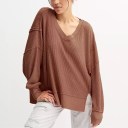 The unique texture of the fabric gives the V Neck Top a trendy and modern look, while the soft and cozy material ensures maximum comfort. This waffle knit V Neck Top is sure to become a go-to favorite.