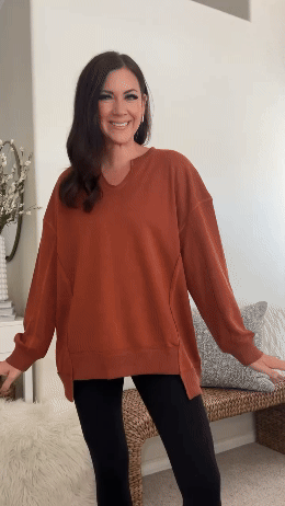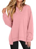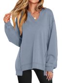 Elevate your style with our Women's Oversized V-Neck Sweatshirt. Featuring a patchwork design and a longer back hem, this sweatshirt combines comfort with fashion-forward flair. Perfect for casual or trendy looks.