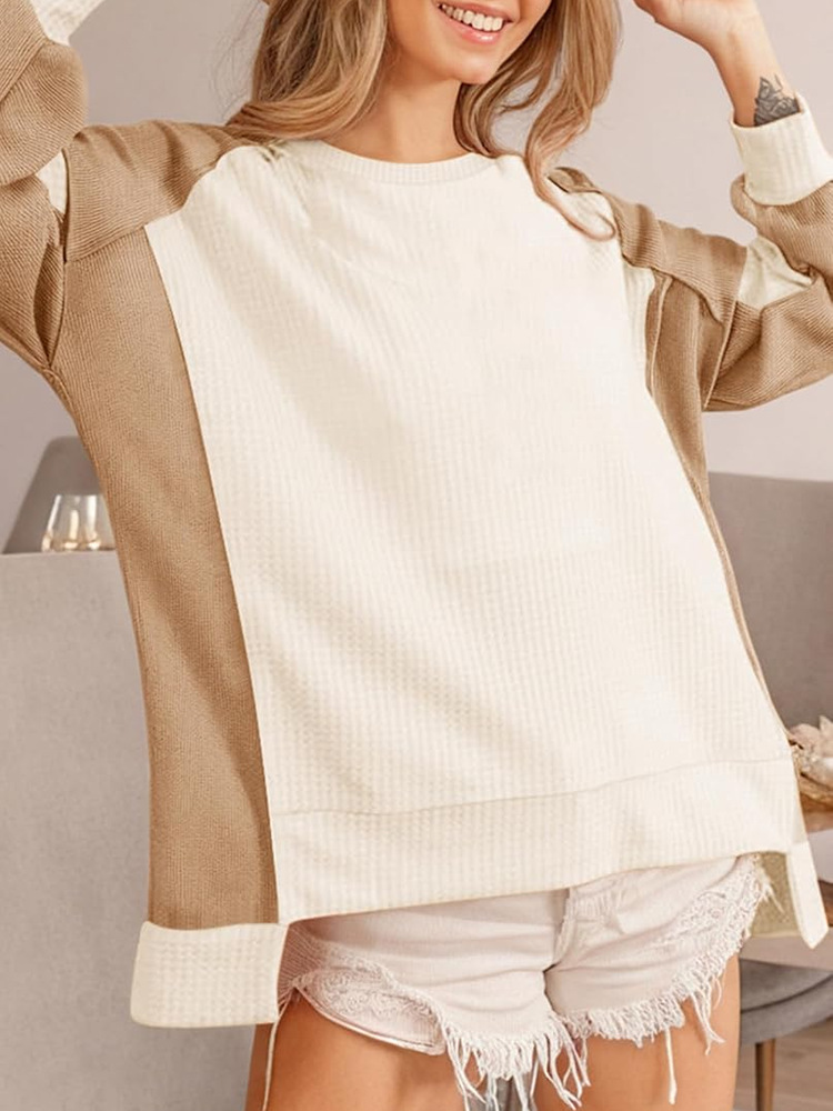 🔥The waffle and ribbing design makes this simple sweatshirt more fashionable