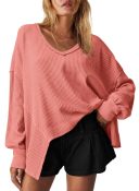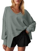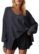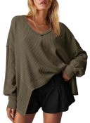 Totally timeless in a staple waffle knit fabrication, this effortlessly essential thermal is featured in a drapey, relaxed fit with lower side hems for added shape. V-neckline, dropped shoulders, exposed seaming.