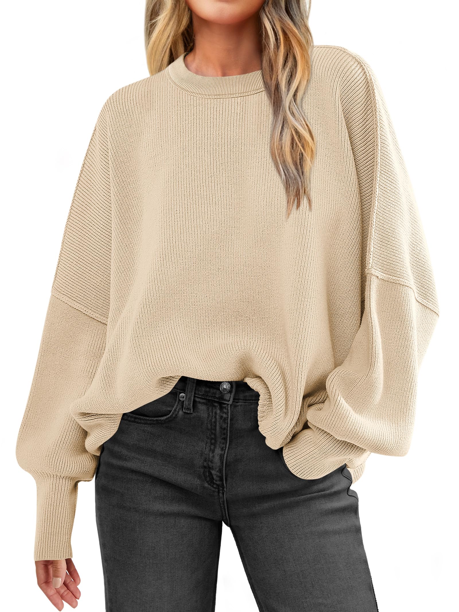 Women Oversized Side Slit Ribbed Knit Pullover Sweaters Top