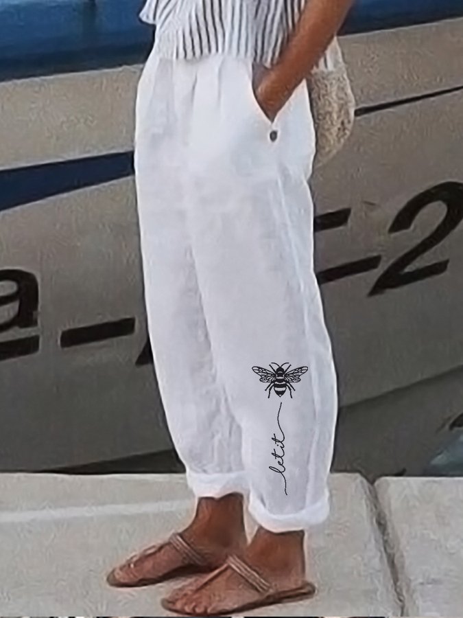 Women's Let It Bee Print Cotton Linen Casual Pants
