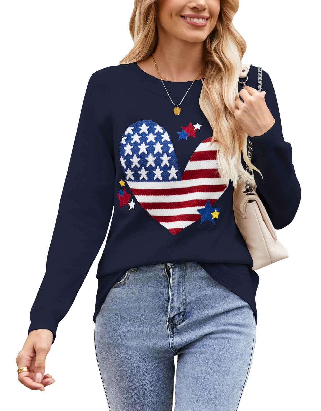 Long sleeve heart pattern pullover sweater, ribbed front texture, soft skin-friendly and cute eye-catching, daily versatile for all!