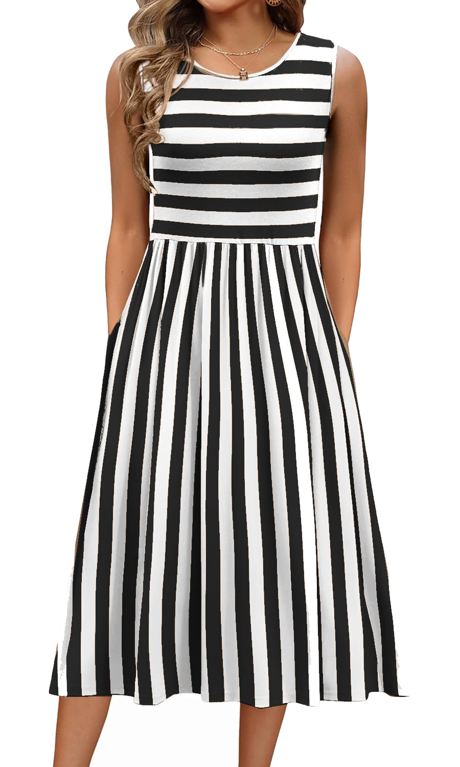 Elevate your summer wardrobe with our chic Women's Summer Striped Tank Midi Dress with Pockets. Crafted for comfort and style, this dress is perfect for both casual outings and special occasions. Stay stylish and effortlessly trendy with this versatile piece in your collection.